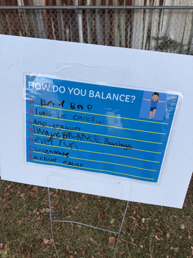At Kootenay Orchards, i worked with two other teacher candidates. The entire school participated with this Take Me Outside Day experience. We set up our own I Love a Challenge stations around the school field. Students from kindergarten to grade 6 came out at different times and got guided to which station they needed to go to. They were supposed to stay at a station for the full 30 minutes but the younger kids had a hard time and short attention spans so we had to switch off with another station to give the students some other activity to do. Our task was more open ended and we just kind of went with the flow depending on what the students wanted to do, allowing for creativity. For this Take Me Outside Day the students before hand did a story walk of the book “OK.” We found out that some students did not do it or maybe didn’t remember the book and also did not know what I Love a Challenge was so I think that was the only challenge we had. other than that it went really well and the kids had a blast. The Grade 4-6 had the most fun at our station especially when i told them a student could stack 10 bean bags on his head and i told them to see if they could beat that record and they got right into it and took up the full 30 minutes working together trying to stack 11 beanbags on their head to beat the record.